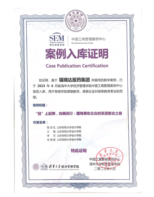 近日,福瑞達聯合山東財經大學以福瑞達美妝板塊價值創造模式為研究對象編制的《“鏈”上起舞,向美而行:國有美妝企業的資源整合之路》企業案例被正式收錄于清華大學經濟管理學院中國工商管理案例庫。