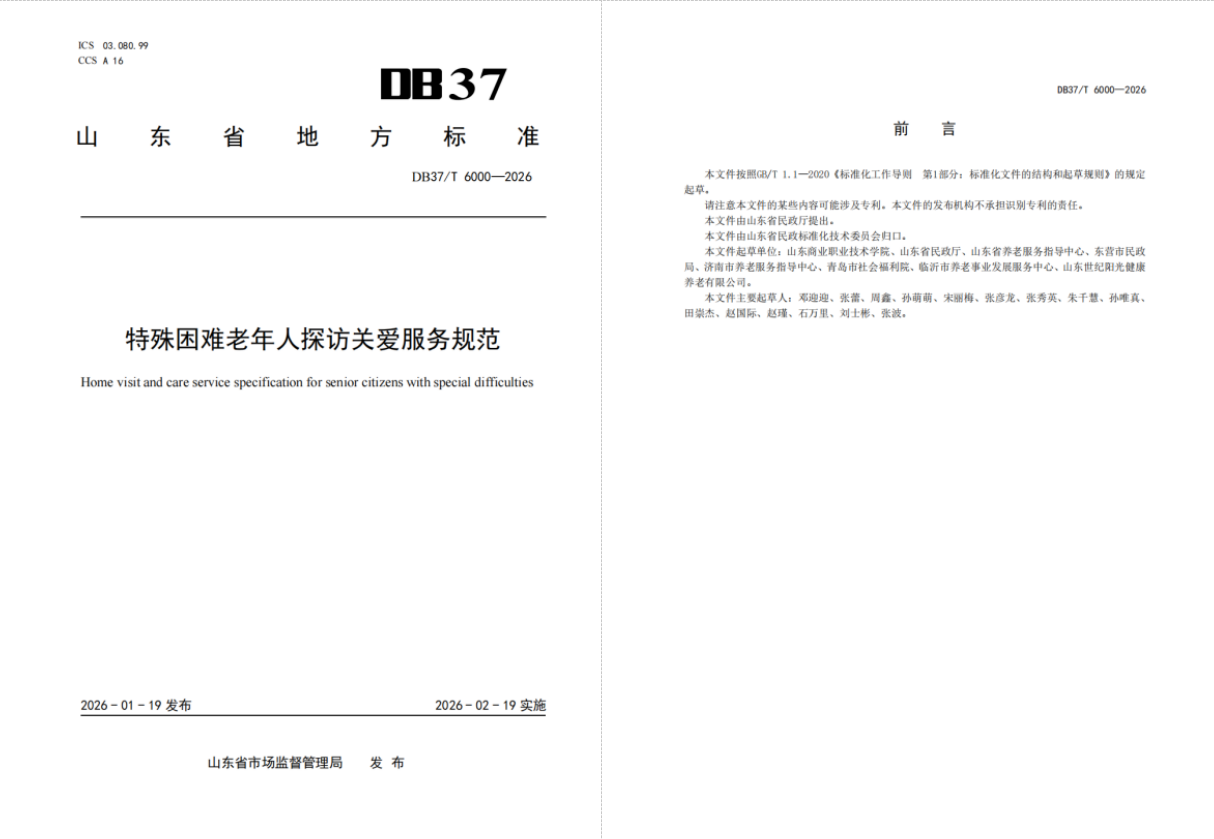 近日,由山東商職學院參與制定的《為老志愿服務規(guī)范》《特殊困難老年人探訪關愛服務規(guī)范》兩項山東省地方標準獲批發(fā)布。