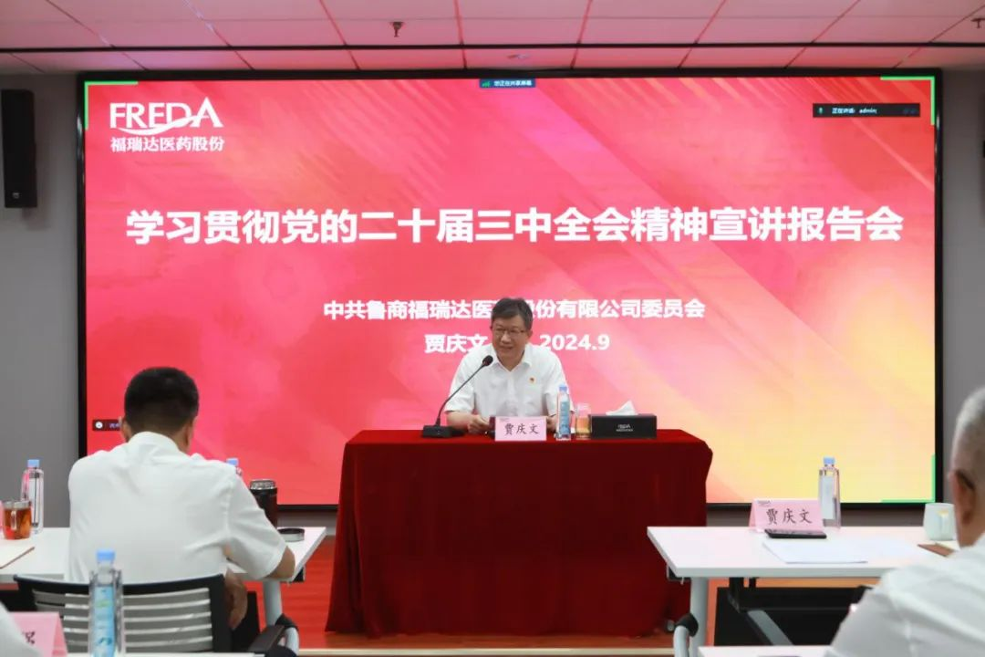 報告會上,賈慶文緊緊圍繞習近平總書記在黨的二十屆三中全會上的重要講話精神和全會《決定》,對全會的基本情況,以及深刻認識進一步全面深化改革、推進中國式現(xiàn)代化的重大意義和總體要求等進行全面系統(tǒng)解讀,對《決定》提出的進一步全面深化改革重大舉措,尤其是國資國企改革舉措進行深入闡釋,并結合福瑞達實際,就抓好全會精神學習貫徹、推動改革舉措落實落地作出安排部署。